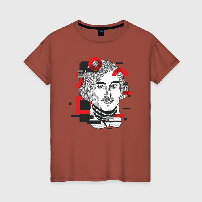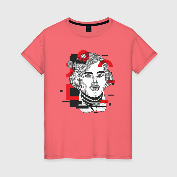 Женская футболка хлопок с принтом Николай Васильевич Гоголь