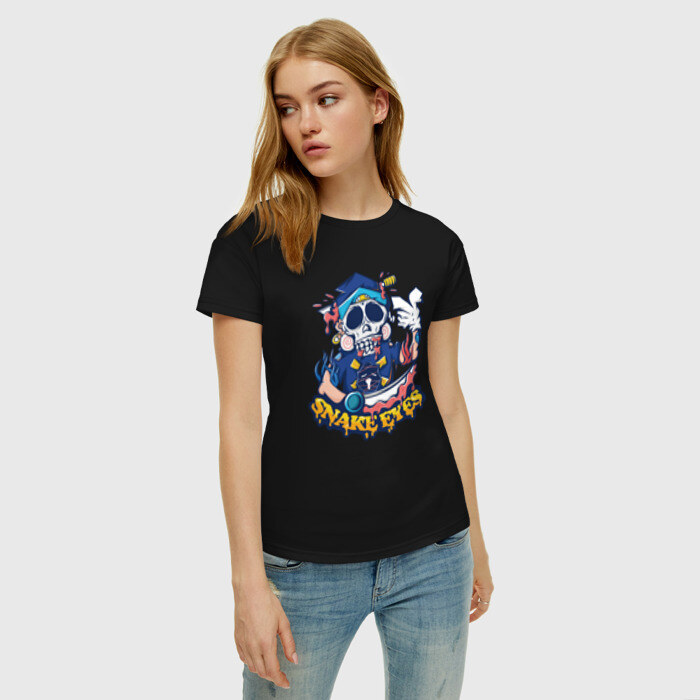 Женская футболка хлопок с принтом Skull Snake Eyes