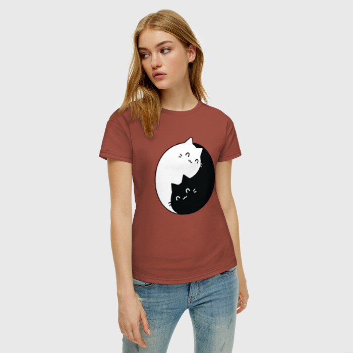 Женская футболка хлопок Инь Ян Котики