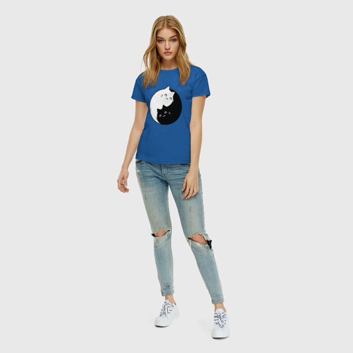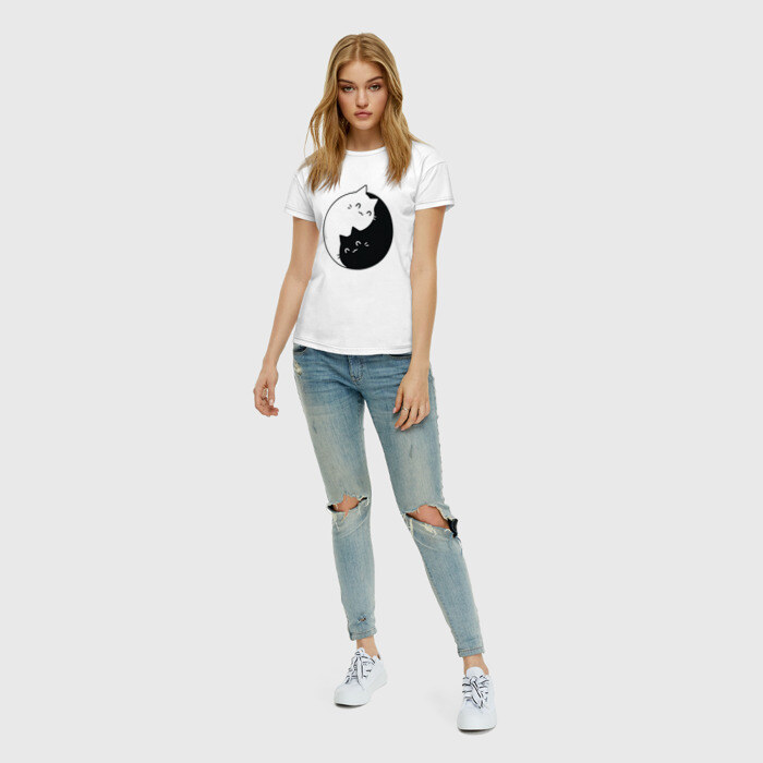 Женская футболка хлопок с принтом Инь Ян Котики