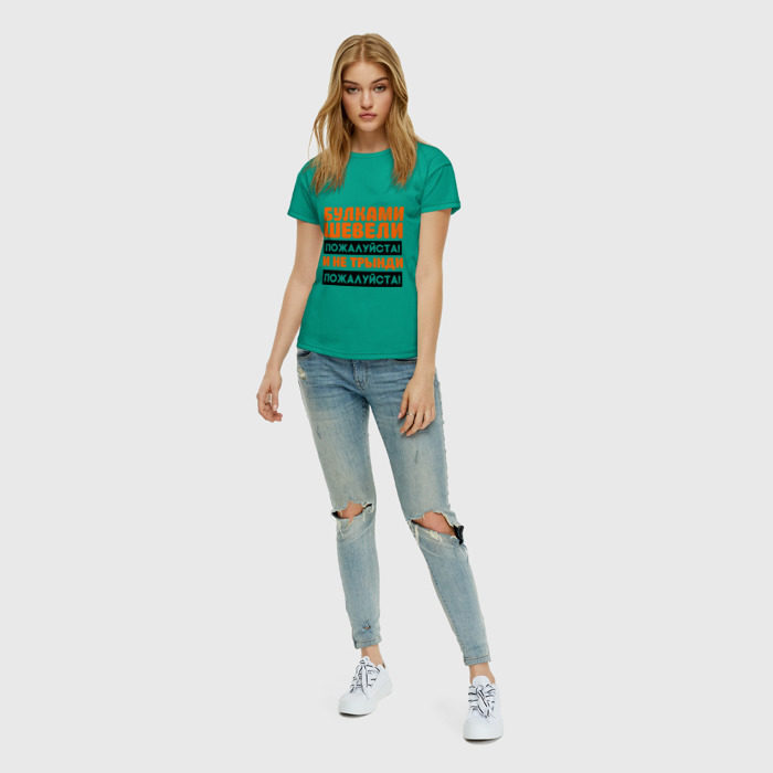 Женская футболка хлопок с принтом Физрук: булками шевели
