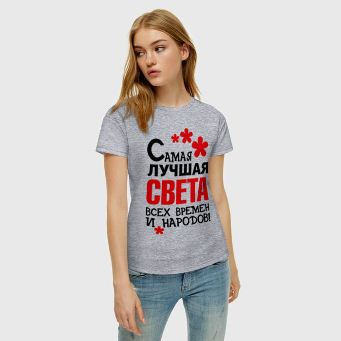 Базовая футболка прямого кроя, создана из мягкого хлопка. Можно купить с принтом из каталога, без принта или со своим дизайном.