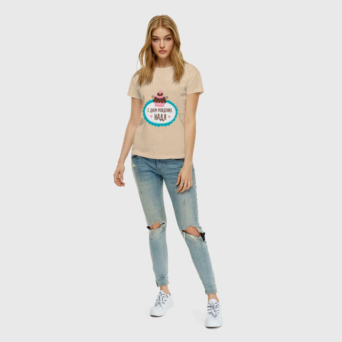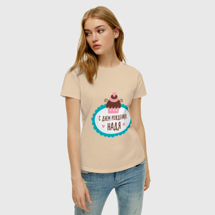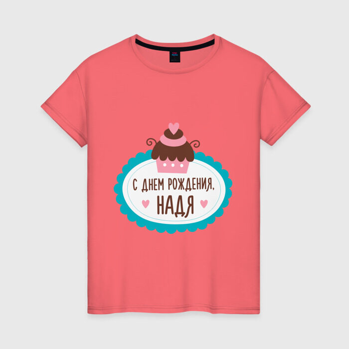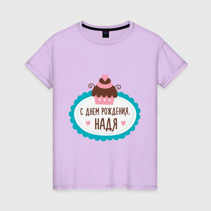 Женская футболка хлопок с принтом С днем рождения, Надя