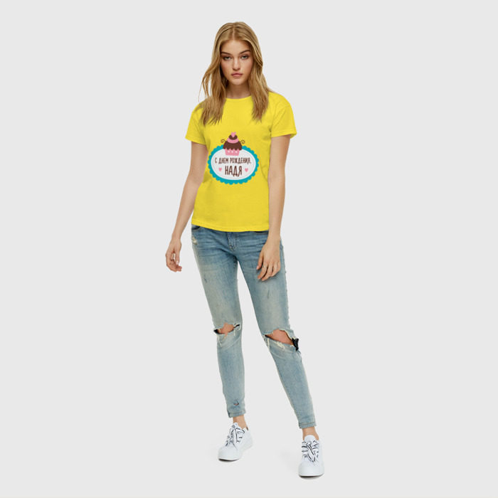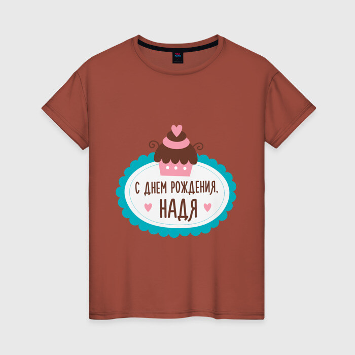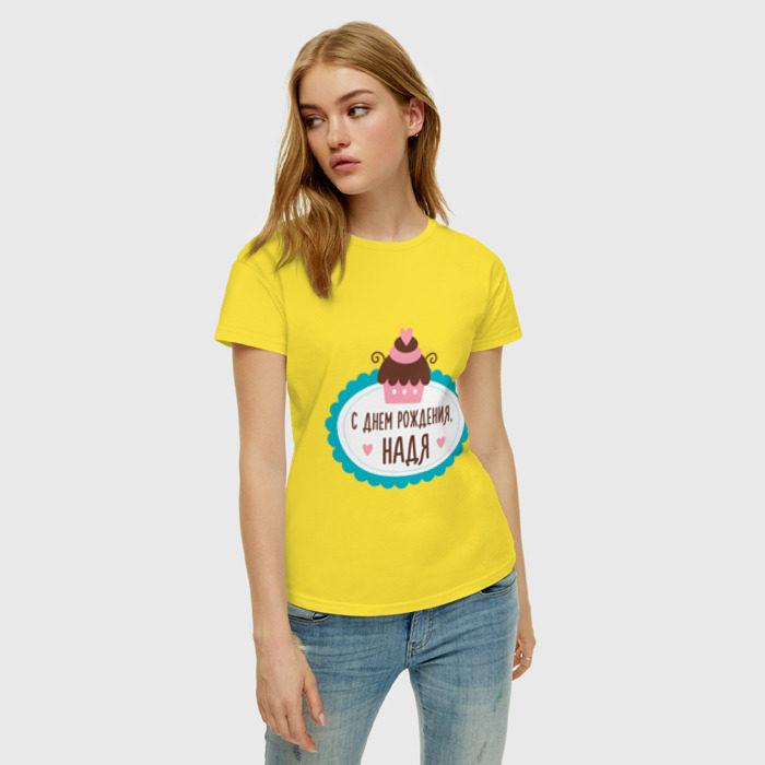 Женская футболка хлопок С днем рождения, Надя