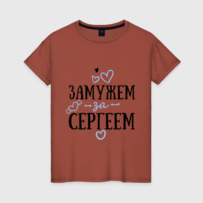 Женская футболка хлопок с принтом Замужем за Сергеем