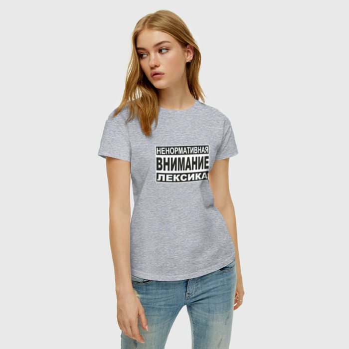 Женская футболка хлопок с принтом Внимание, ненормативная лексика