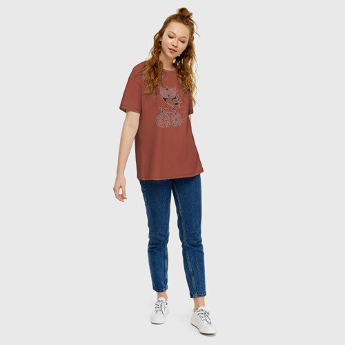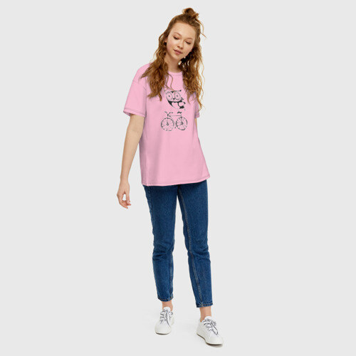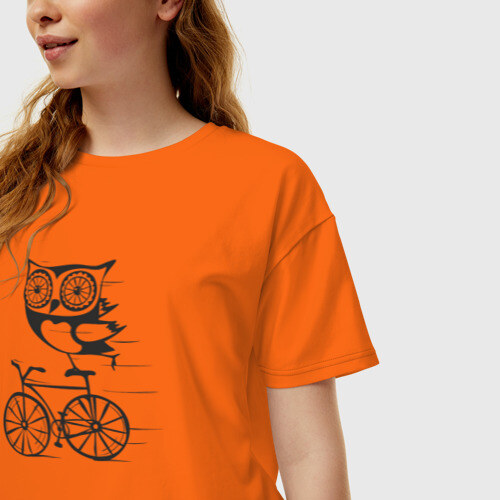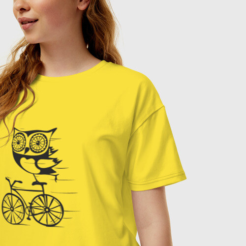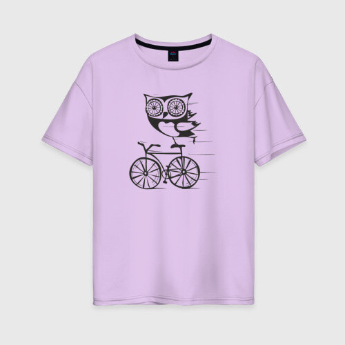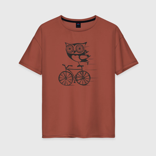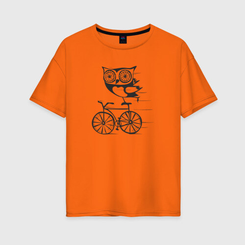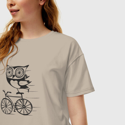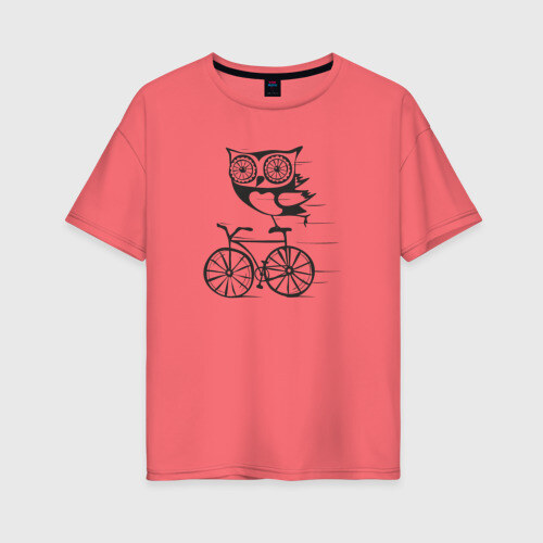 Женская футболка хлопок Oversize с принтом Сова на велосипеде