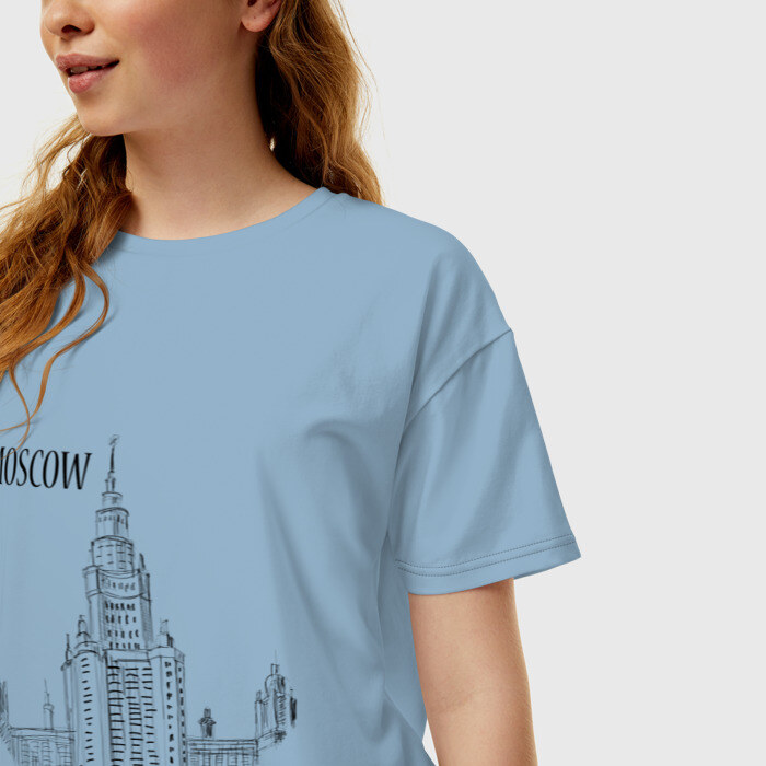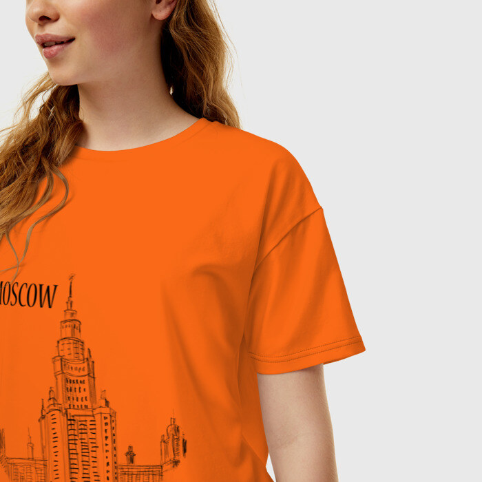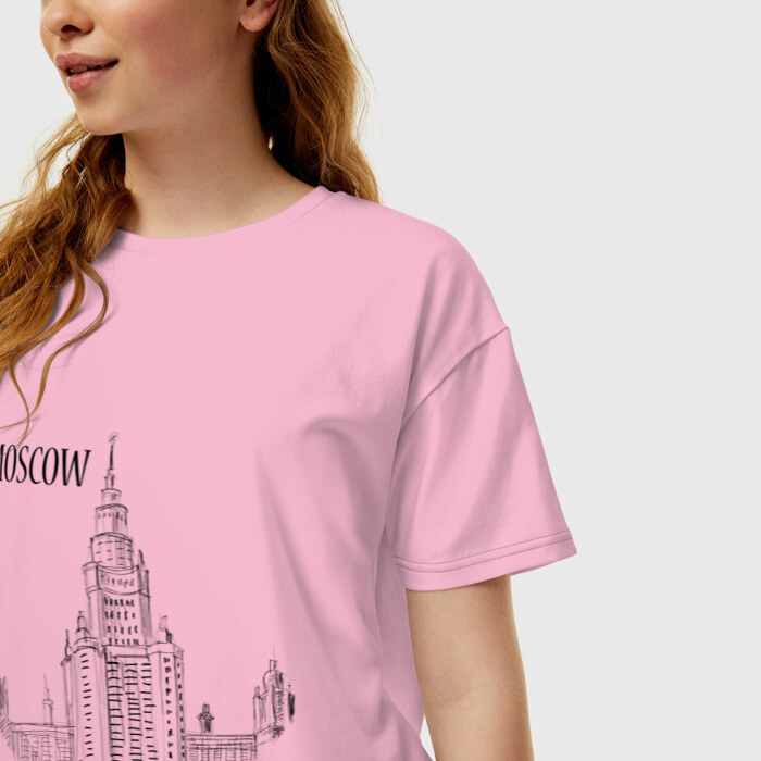 Женская футболка хлопок Oversize с принтом MOSCOW (эскиз)