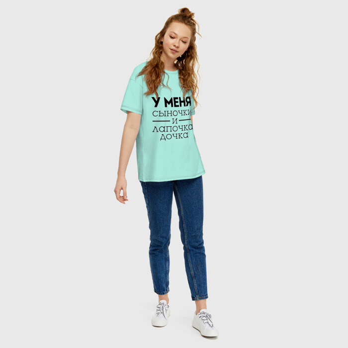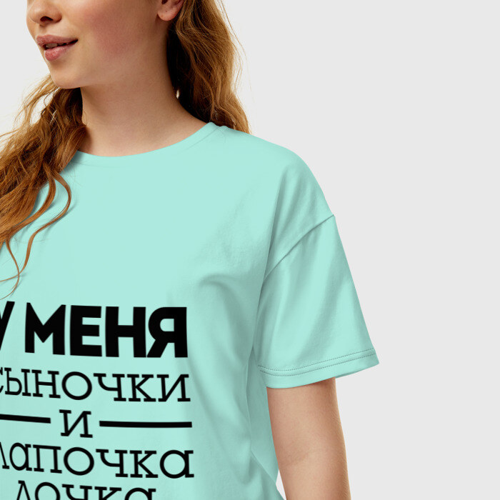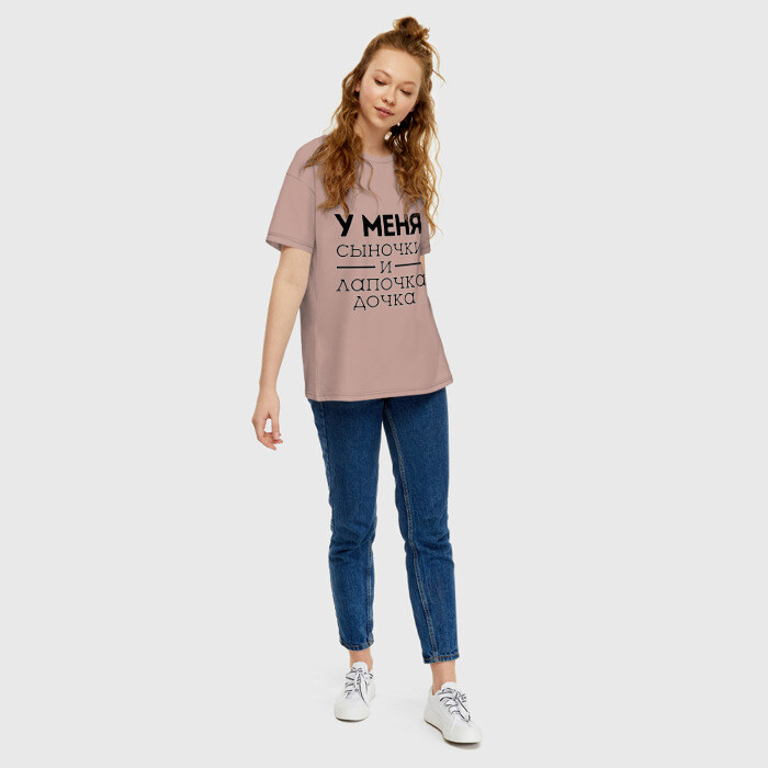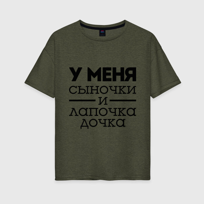 Женская футболка хлопок Oversize с принтом Сыночки и лапочка дочка