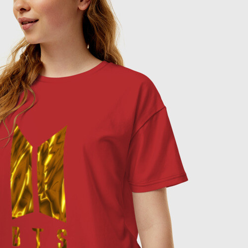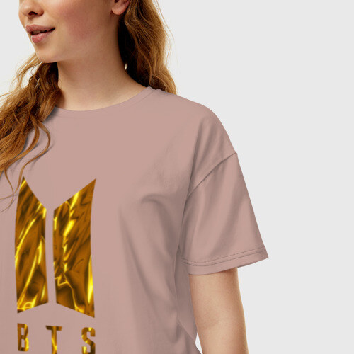 Женская футболка хлопок Oversize с принтом BTS GOLDEN