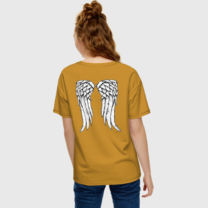 Женская футболка хлопок Oversize Дэрил (Крылья на Спине)
