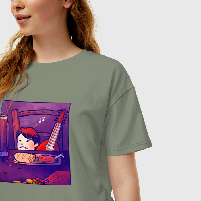 Женская футболка хлопок Oversize с принтом Witcher yelling at Ведьмак mem