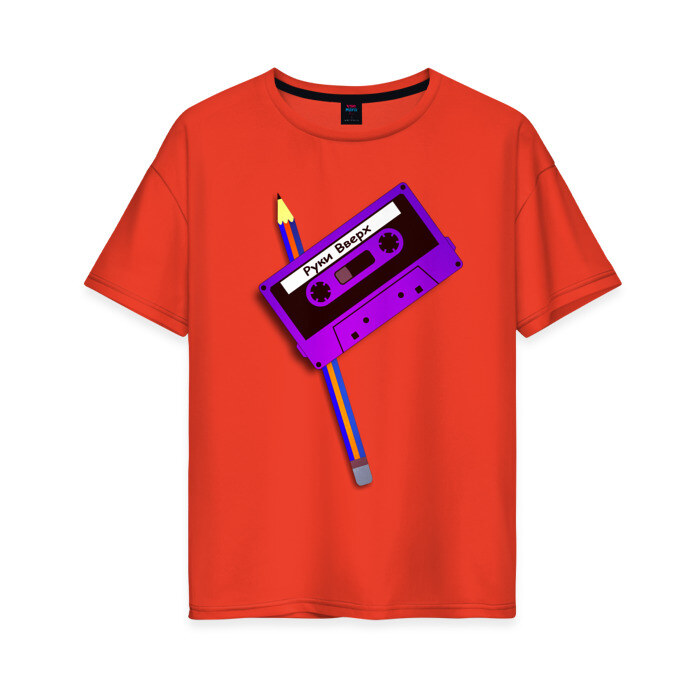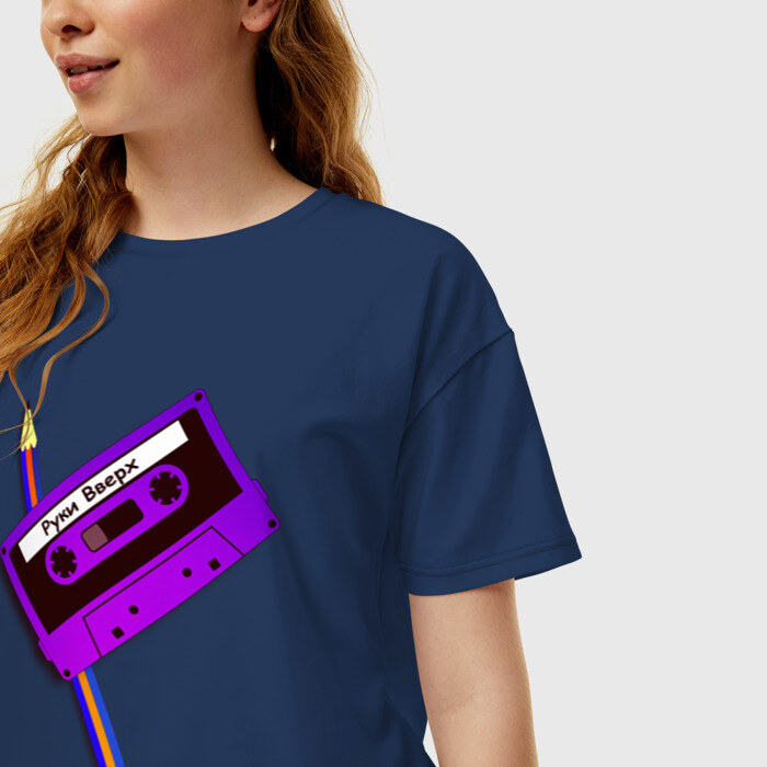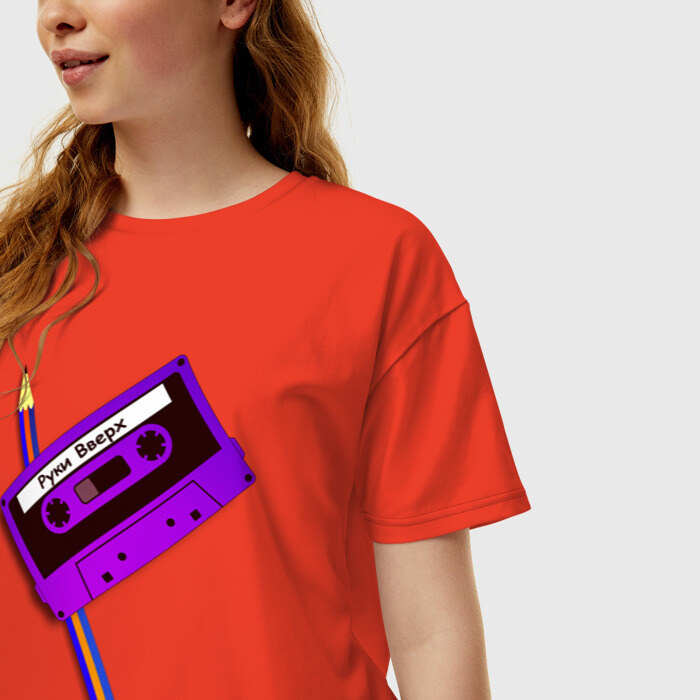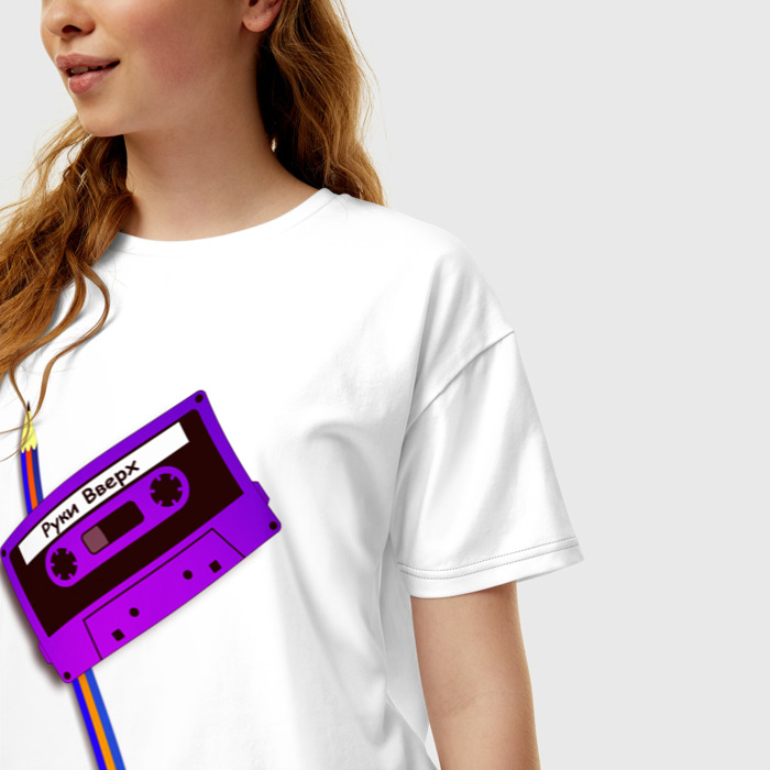 Женская футболка хлопок Oversize с принтом Руки Вверх