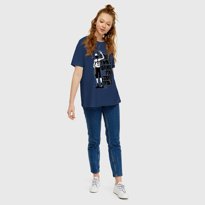 Футболка свободного кроя со спущенными рукавами, длина до линии бедер. Свободный крой позволяет носить футболку и с брюками, и с джинсами. Выполнена из 100% хлопка, благодаря чему кожа дышит и не раздражается. Принт нанесен методом прямой печати, что позволяет сохранить цвет и яркость после многочисленных стирок. Сделано в России.