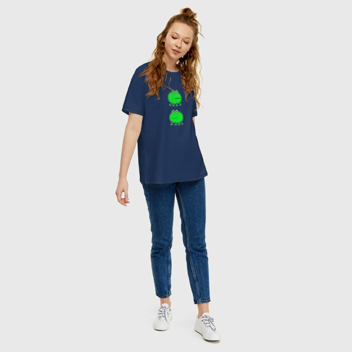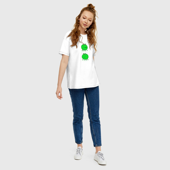Футболка свободного кроя со спущенными рукавами, длина до линии бедер. Свободный крой позволяет носить футболку и с брюками, и с джинсами. Выполнена из 100% хлопка, благодаря чему кожа дышит и не раздражается. Принт нанесен методом прямой печати, что позволяет сохранить цвет и яркость после многочисленных стирок. Сделано в России.