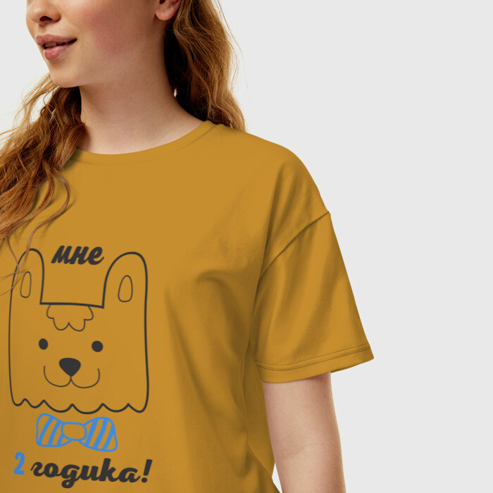 Женская футболка хлопок Oversize с принтом Мне 2 годика