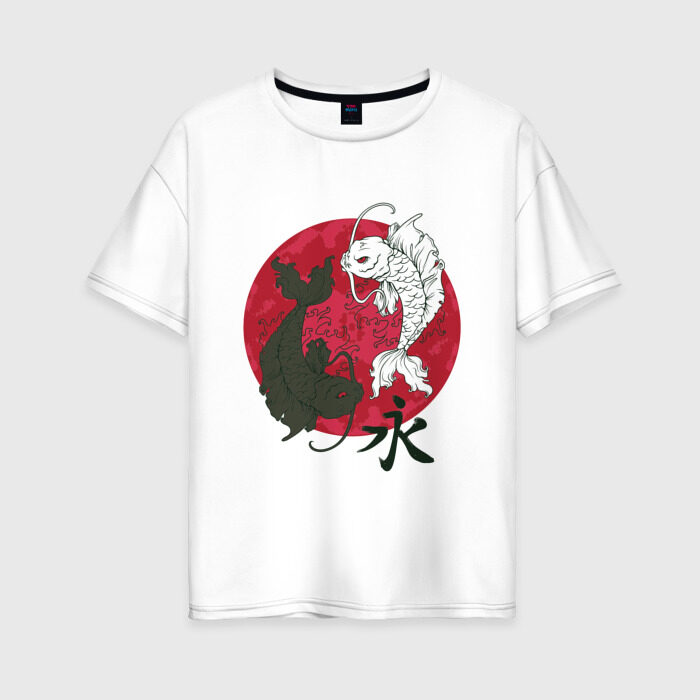 Женская футболка хлопок Oversize с принтом Карпы Кои