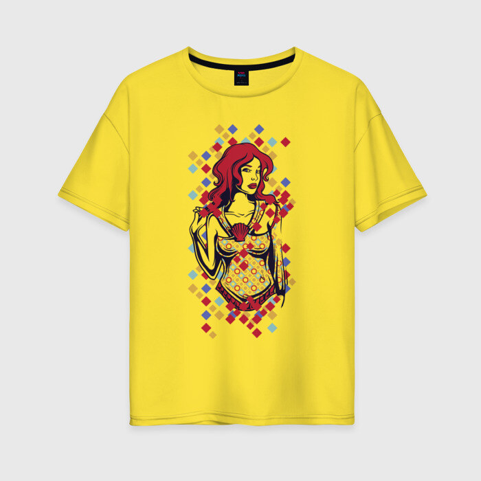 Женская футболка хлопок Oversize с принтом Красивая Девушка