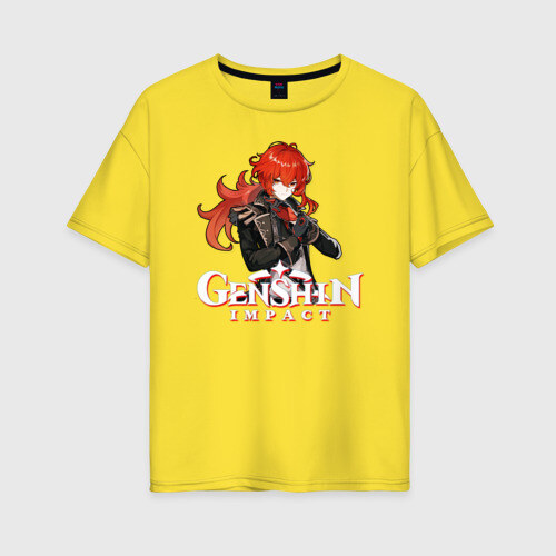 Женская футболка хлопок Oversize Genshin impact Дилюк