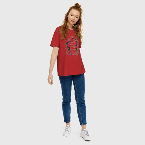 Футболка свободного кроя со спущенными рукавами, длина до линии бедер. Свободный крой позволяет носить футболку и с брюками, и с джинсами. Выполнена из 100% хлопка, благодаря чему кожа дышит и не раздражается. Принт нанесен методом прямой печати, что позволяет сохранить цвет и яркость после многочисленных стирок. Сделано в России.