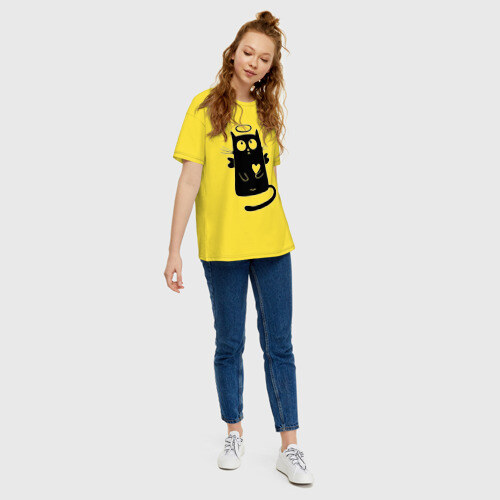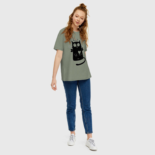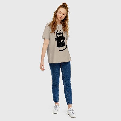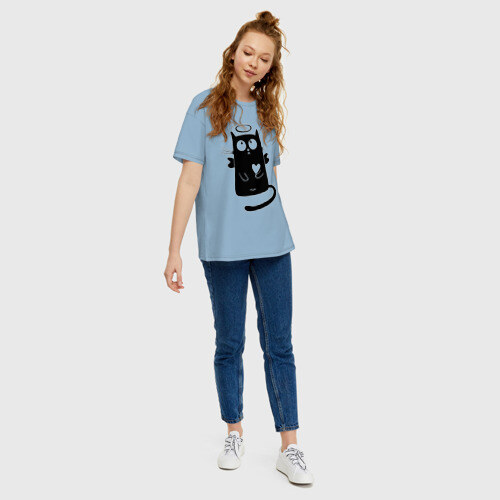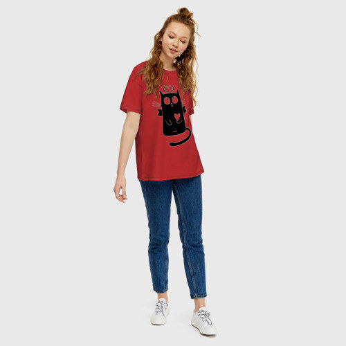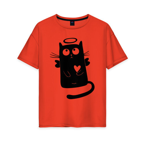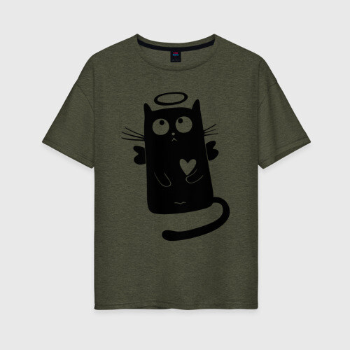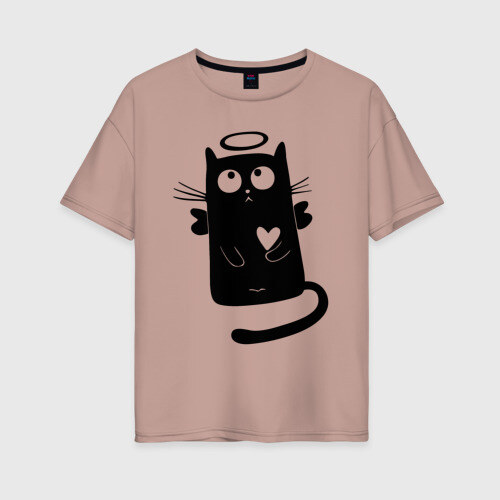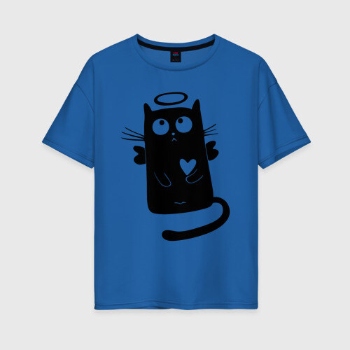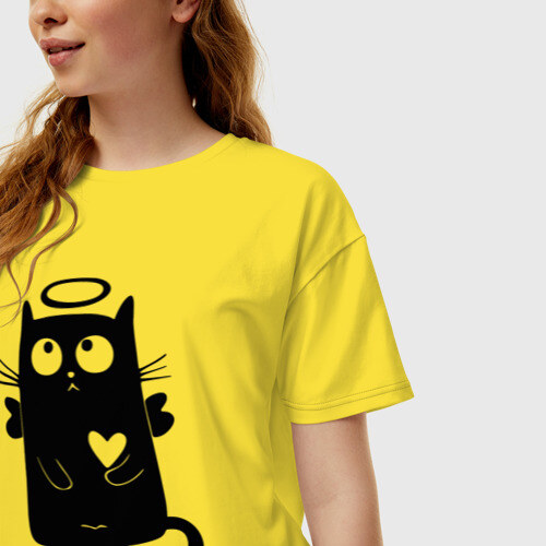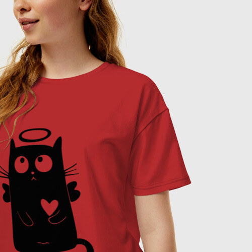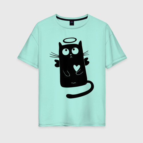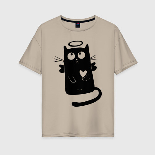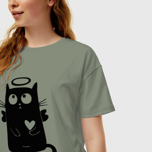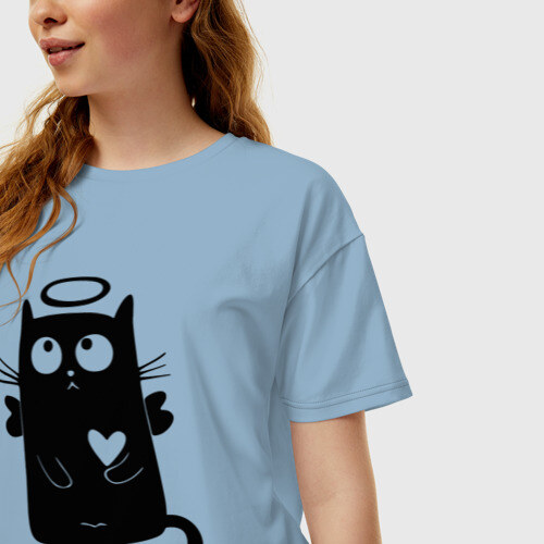Женская футболка хлопок Oversize Влюбленный котик-ангел любви
