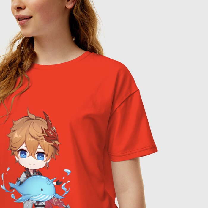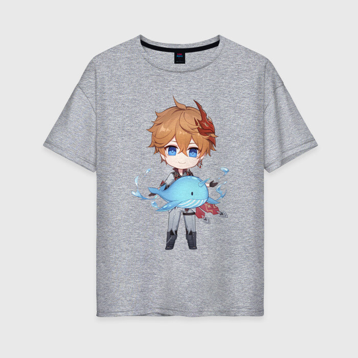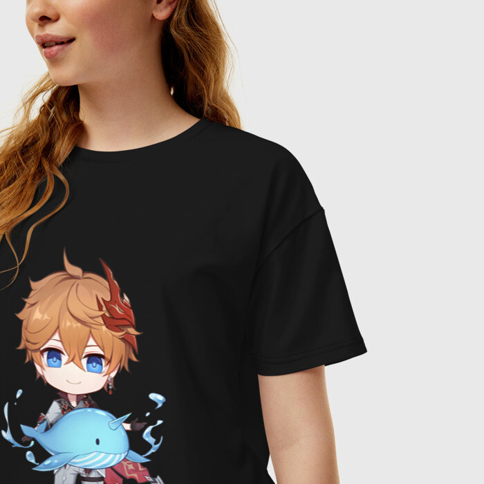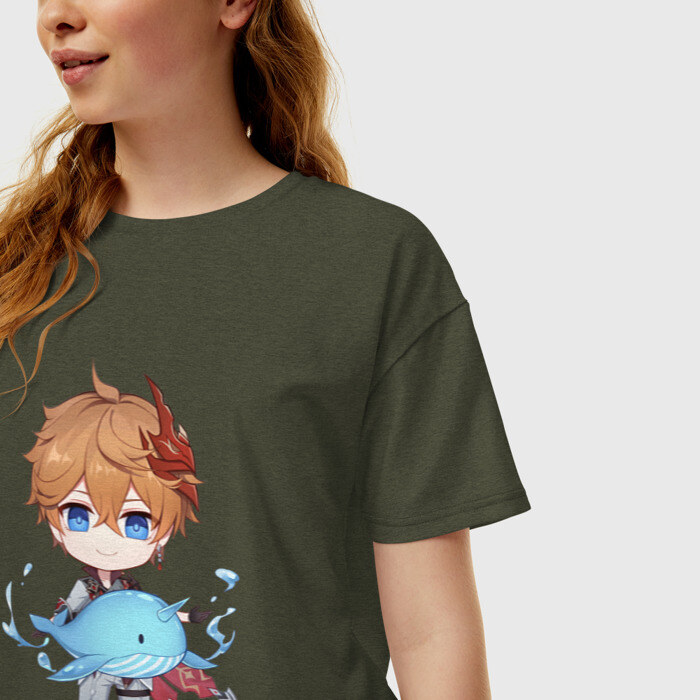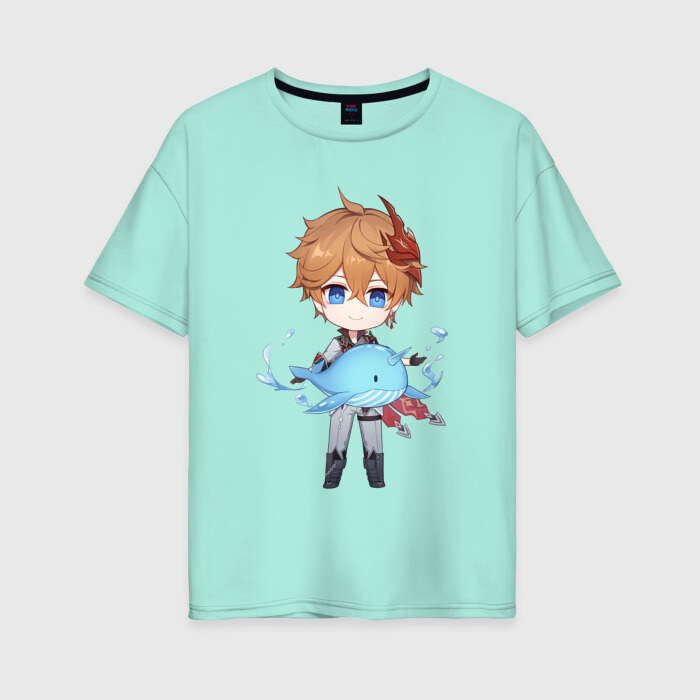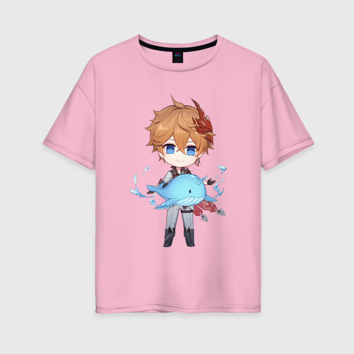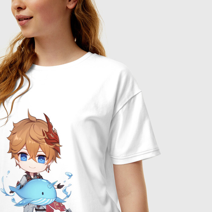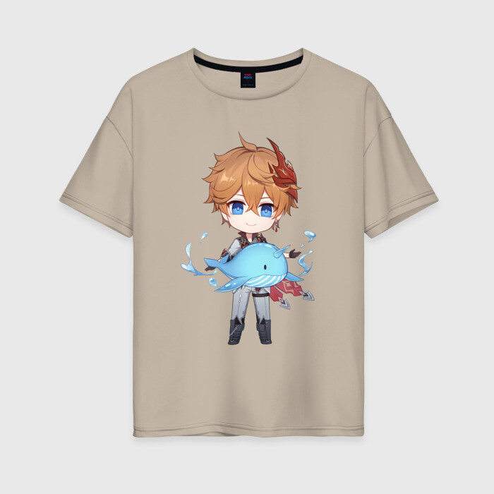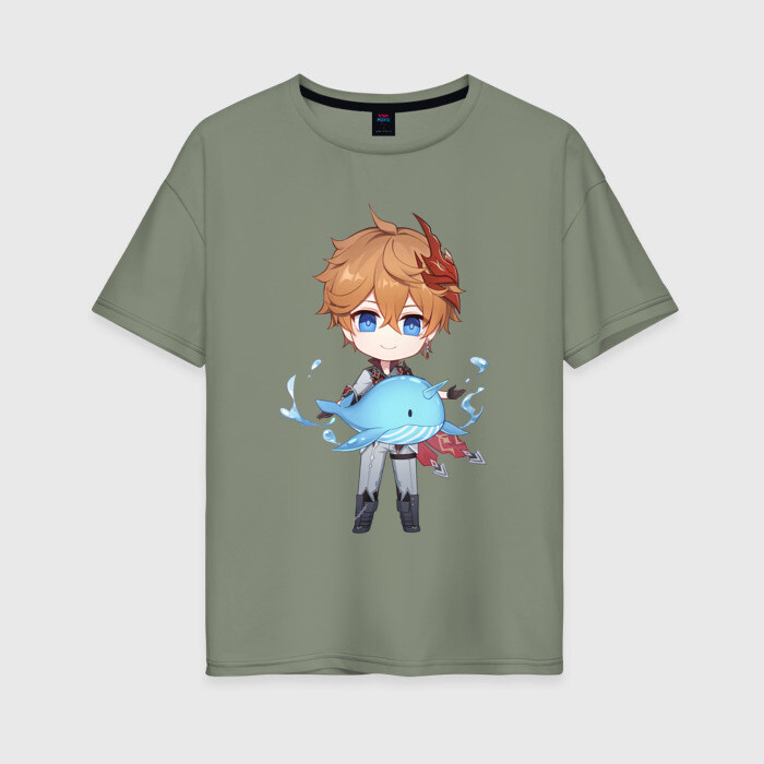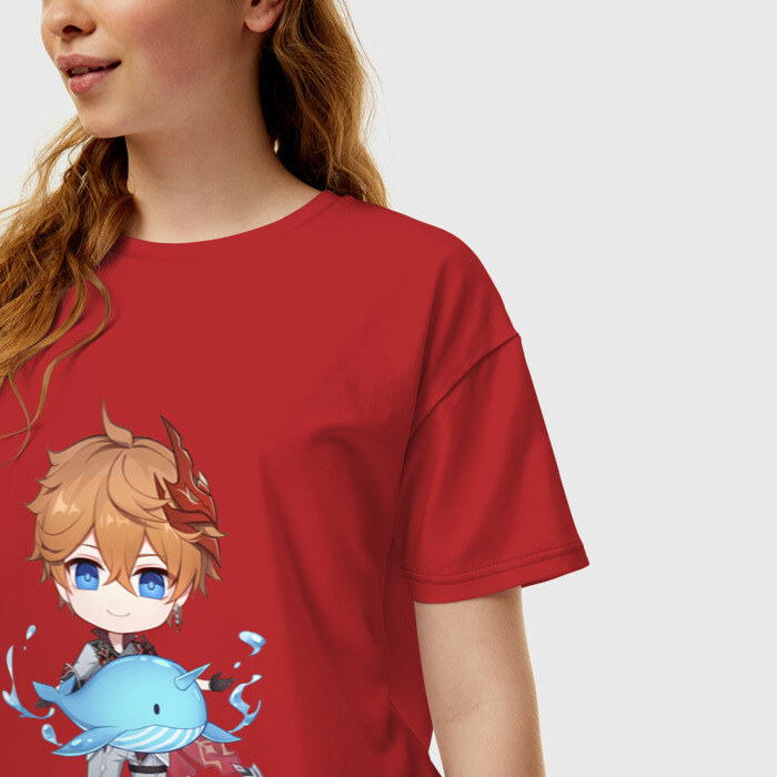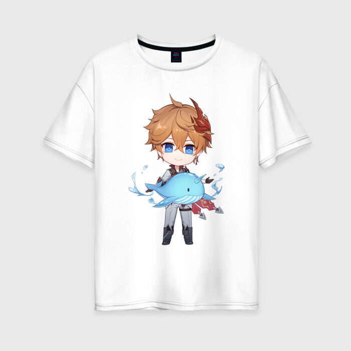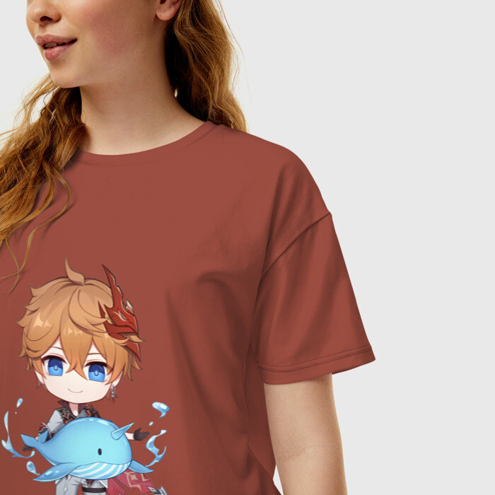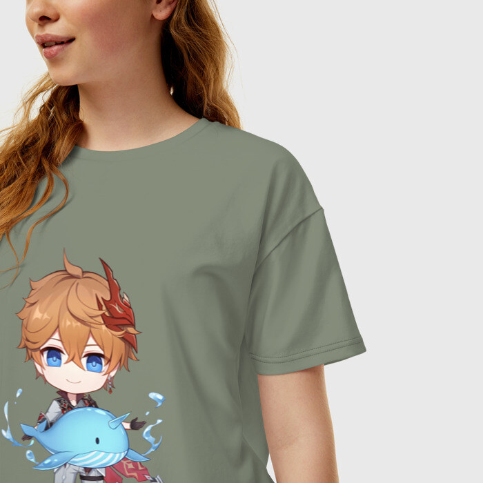 Женская футболка хлопок Oversize с принтом Чиби Тарталья
