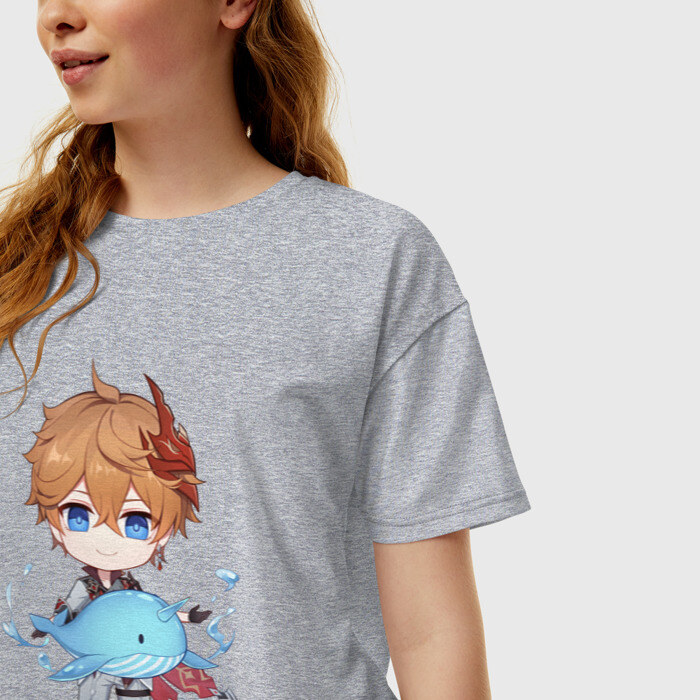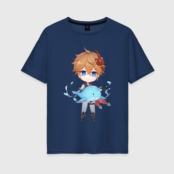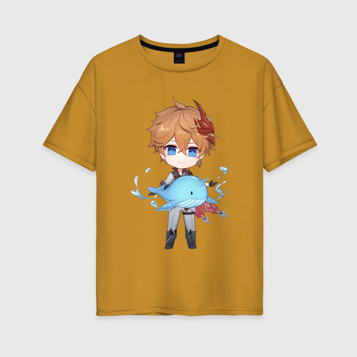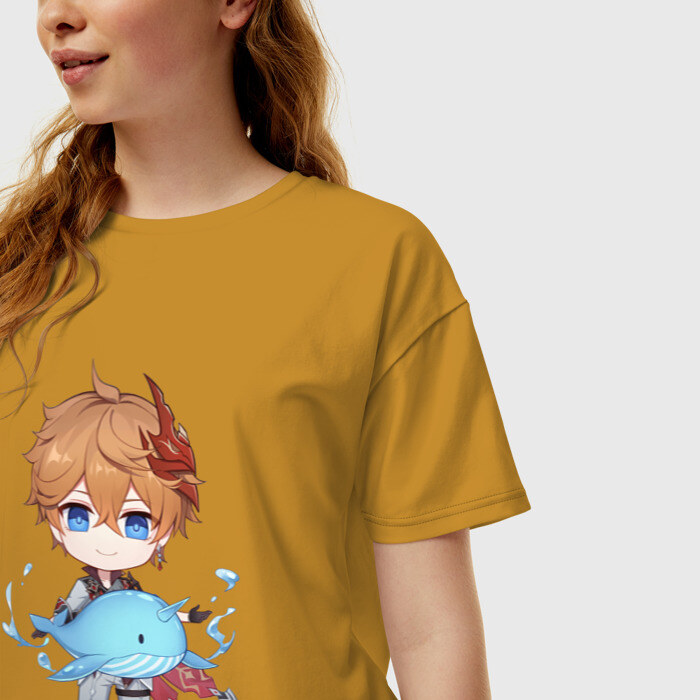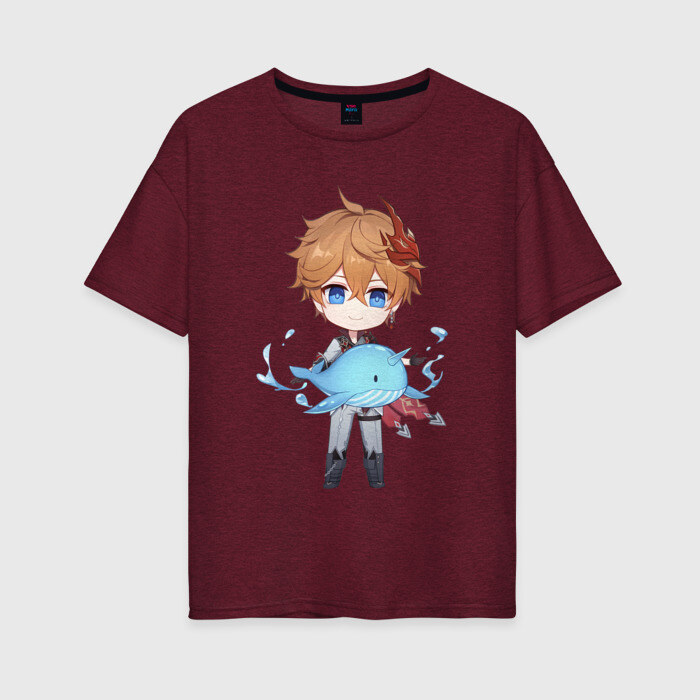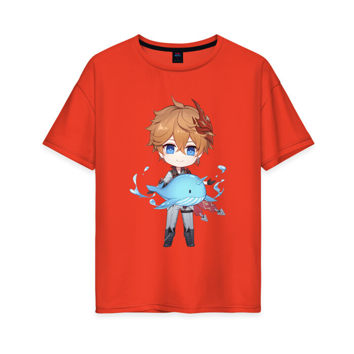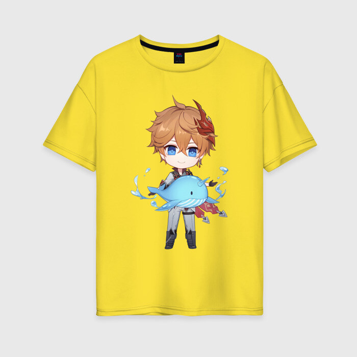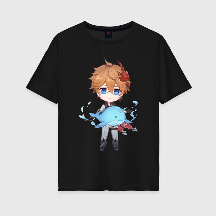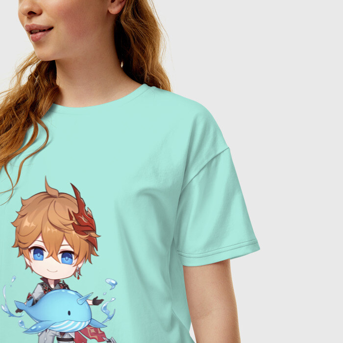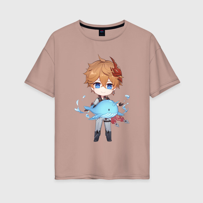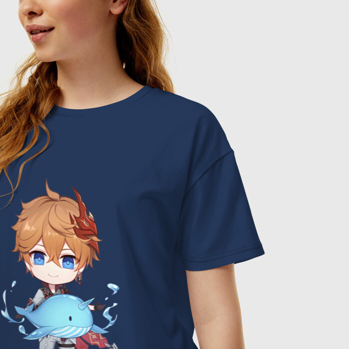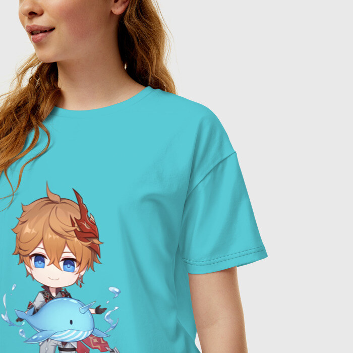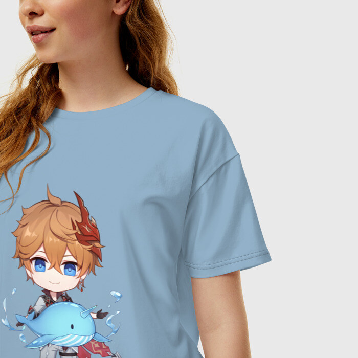 Женская футболка хлопок Oversize с принтом Чиби Тарталья