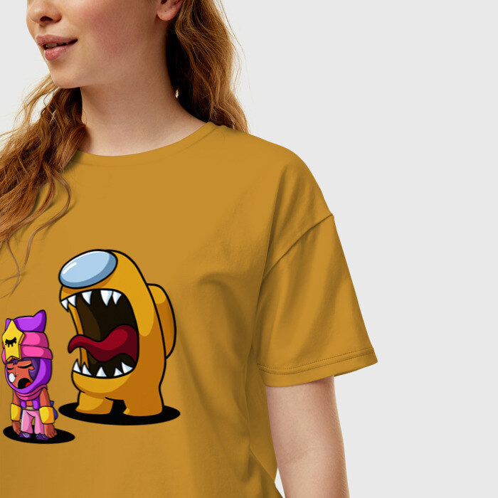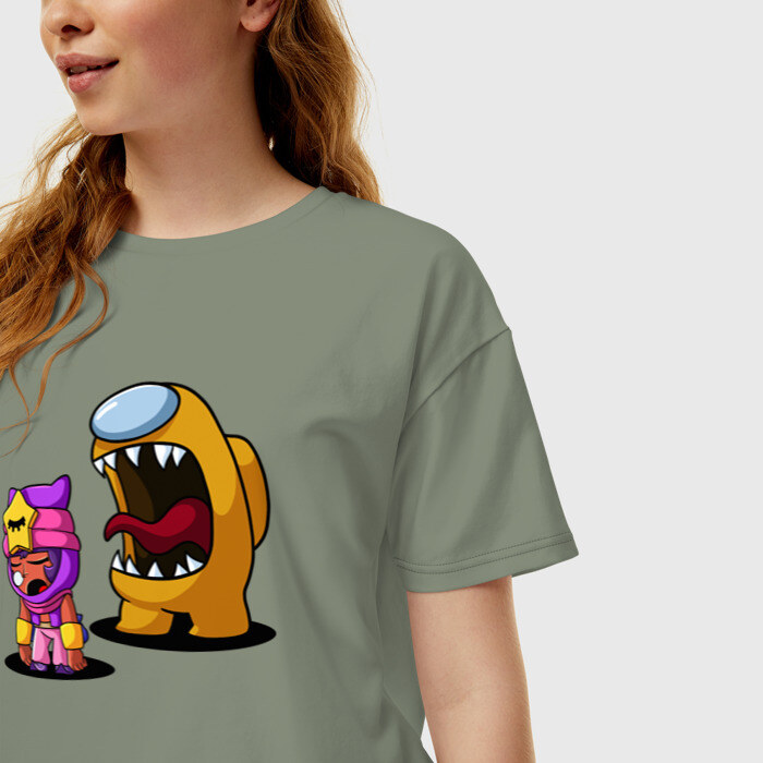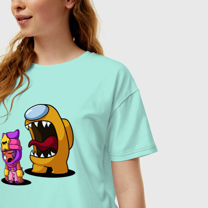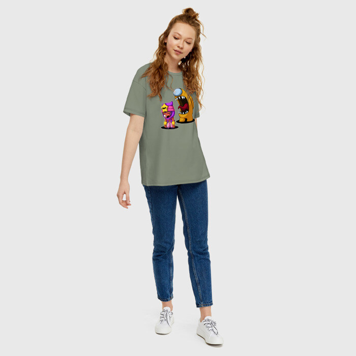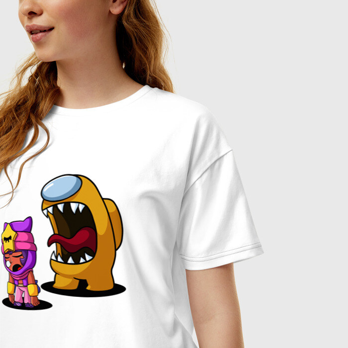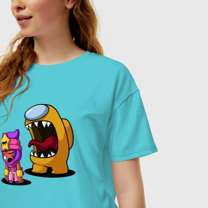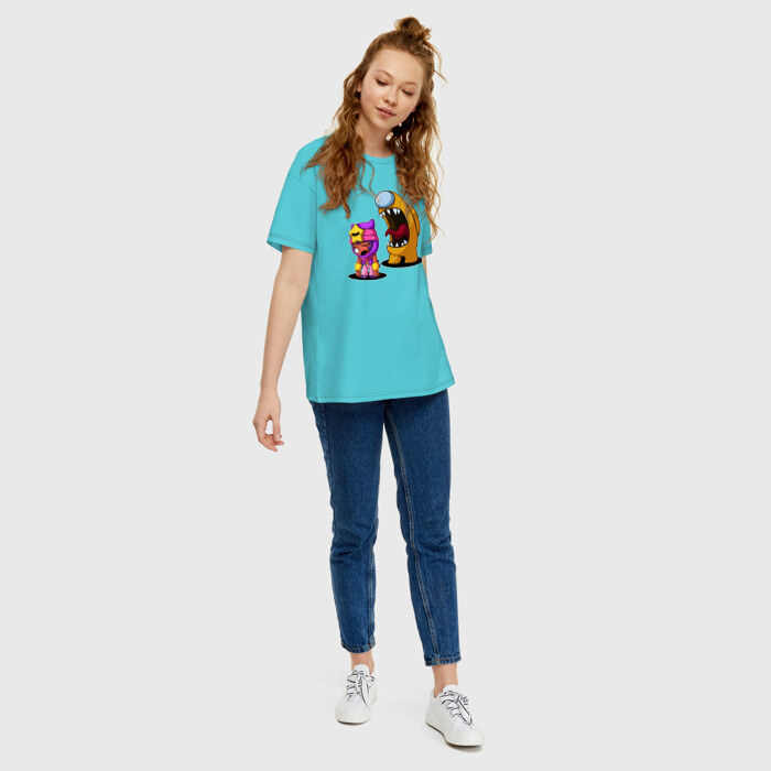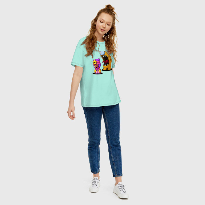 Женская футболка хлопок Oversize с принтом Imposter and Sandy