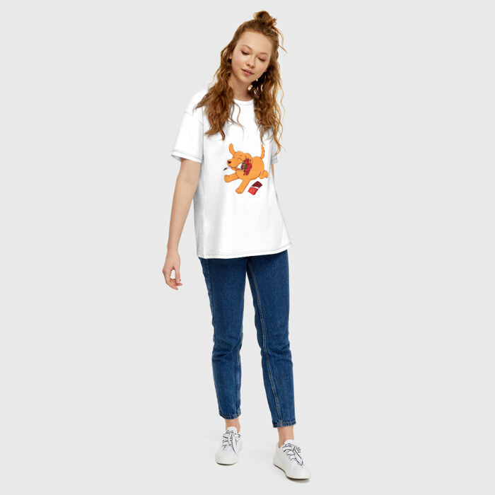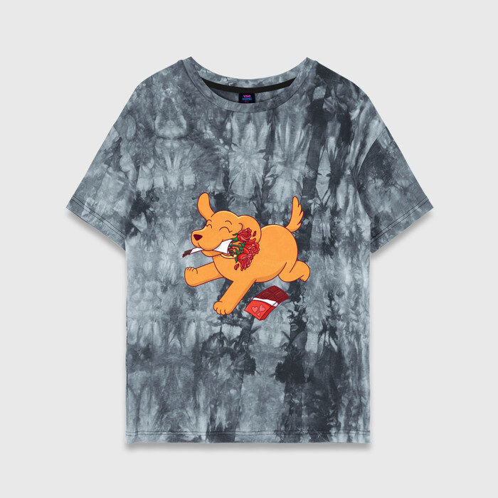 Женская футболка хлопок Oversize Собака с цветами и шоколадкой