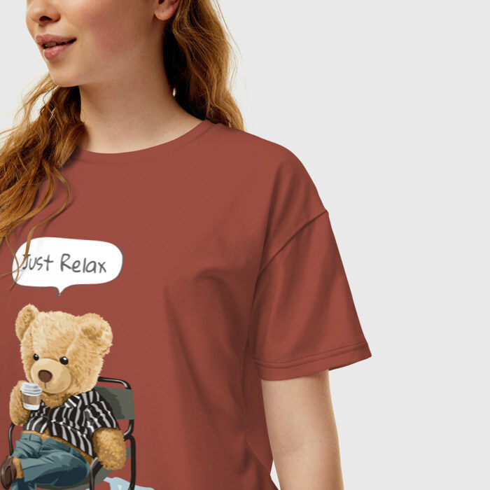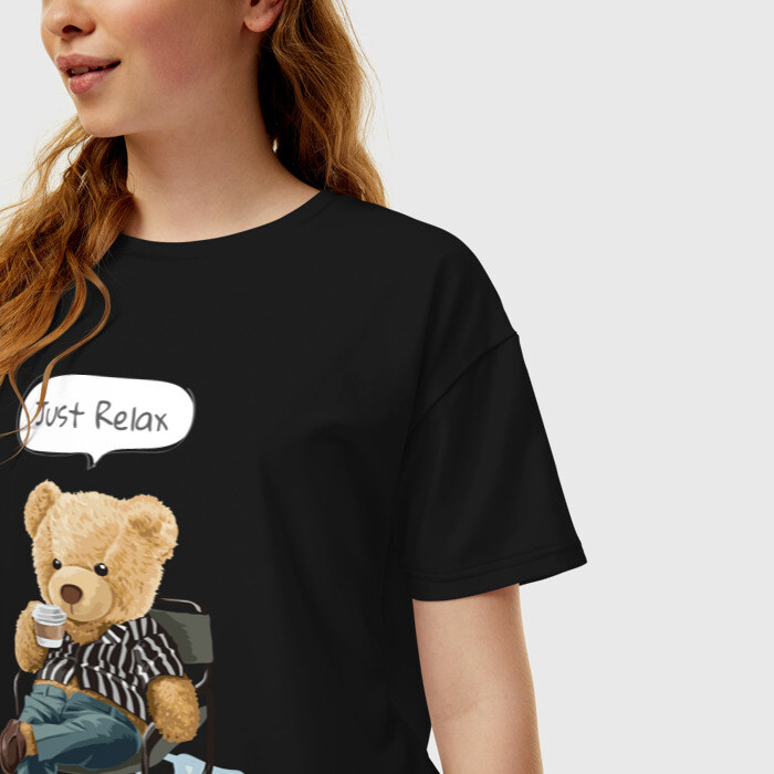 Женская футболка хлопок Oversize с принтом Just Relax
