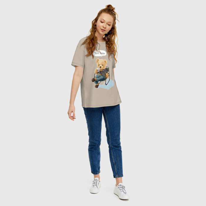 Футболка свободного кроя со спущенными рукавами, длина до линии бедер. Свободный крой позволяет носить футболку и с брюками, и с джинсами. Выполнена из 100% хлопка, благодаря чему кожа дышит и не раздражается. Принт нанесен методом прямой печати, что позволяет сохранить цвет и яркость после многочисленных стирок. Сделано в России.