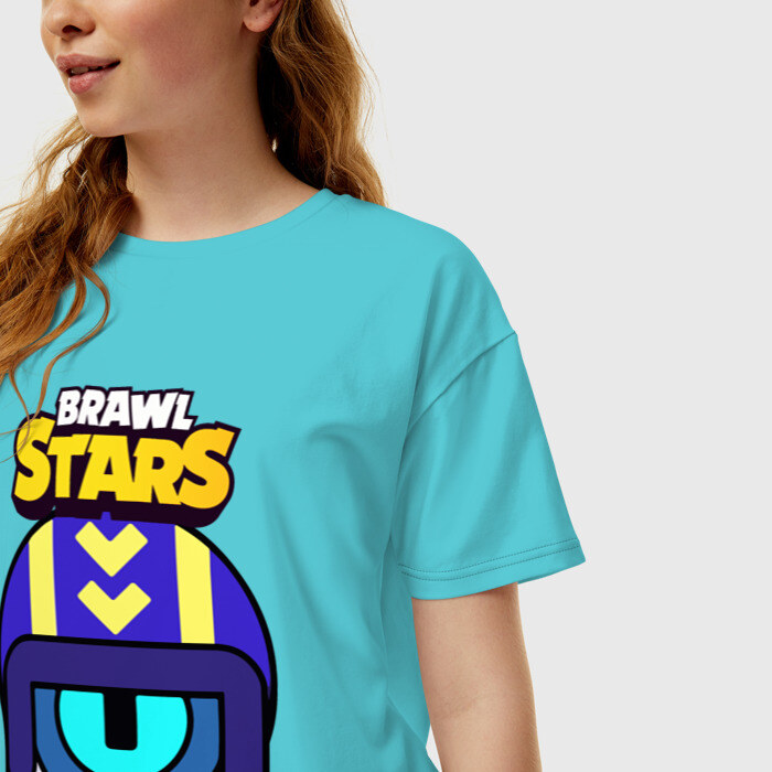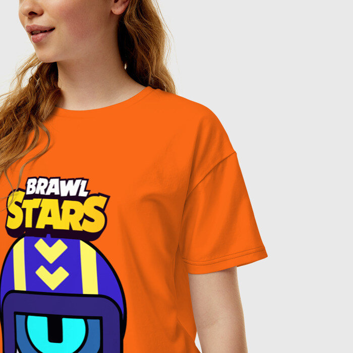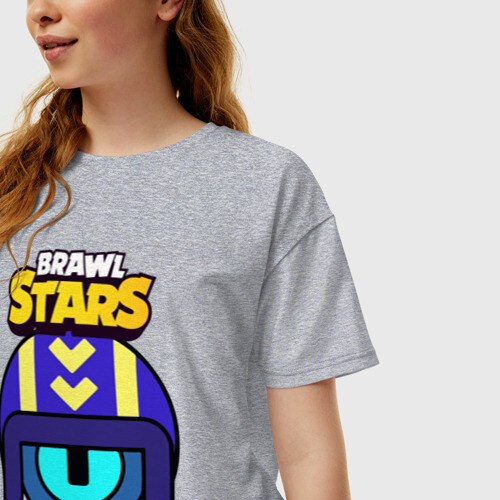 Женская футболка хлопок Oversize с принтом STU СТУ Brawl Stars