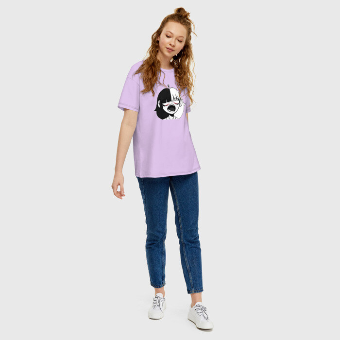Женская футболка хлопок Oversize Кричащая аниме девушка