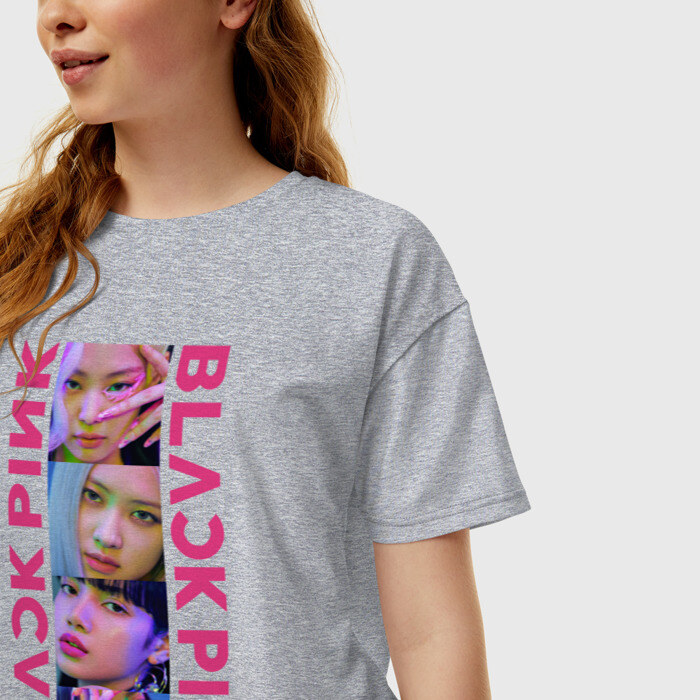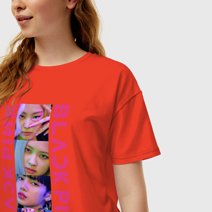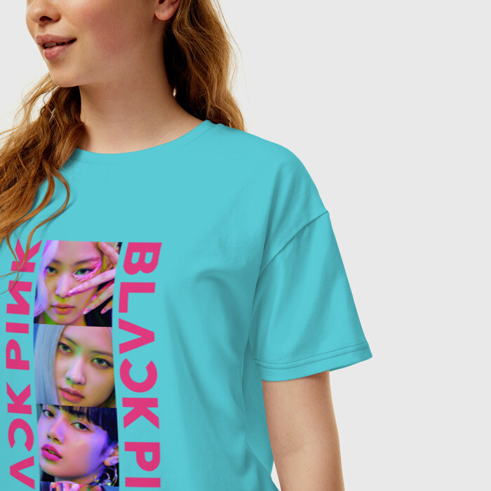 Женская футболка хлопок Oversize BLACKPINK Neon