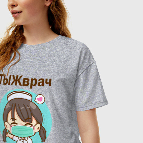 Женская футболка хлопок Oversize с принтом Медсестра | ТЫЖврач (Z)
