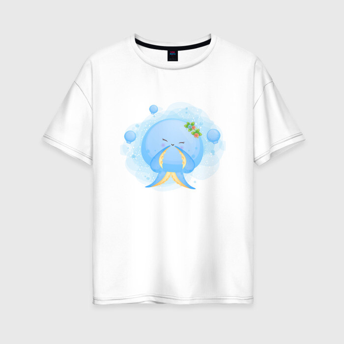 Женская футболка хлопок Oversize с принтом Милая осьминожка
