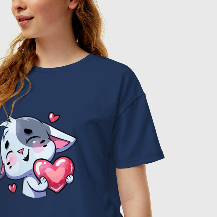 Женская футболка хлопок Oversize с принтом Котик с сердечком