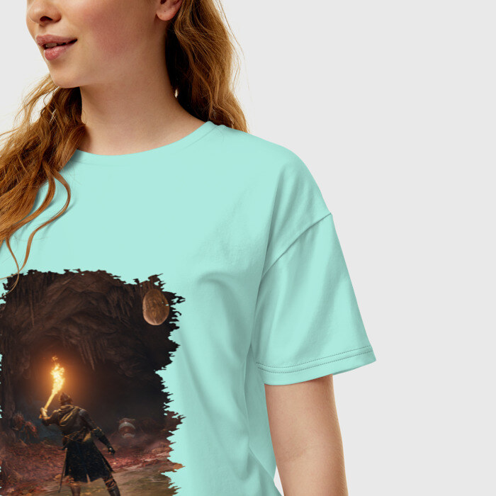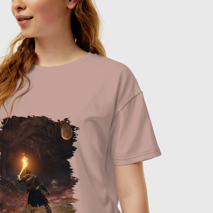 Женская футболка хлопок Oversize с принтом Elden ring концепт арт