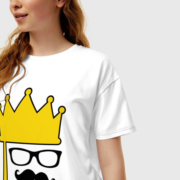 Женская футболка хлопок Oversize Мужская корона и очки