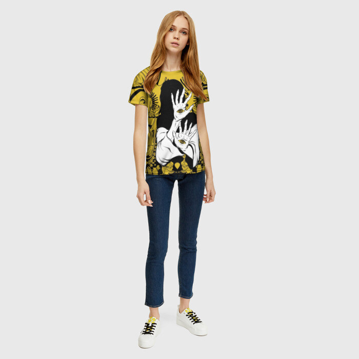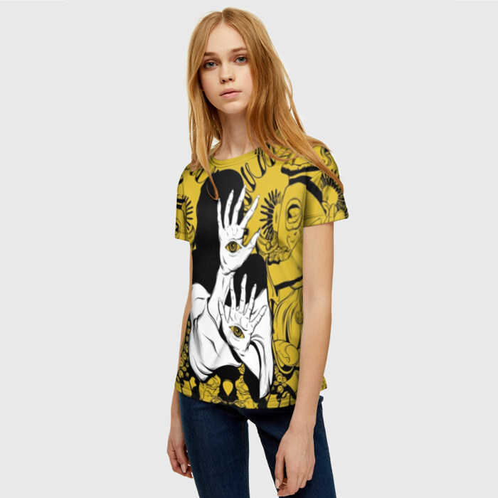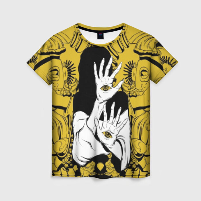 Женская футболка 3D с принтом Девушка с глазами на руках