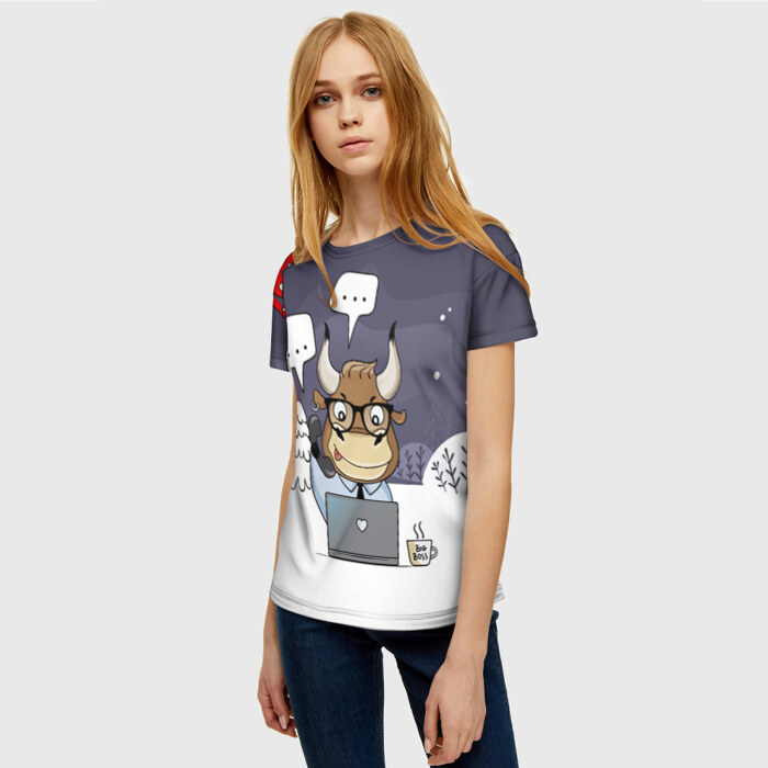 Женская футболка 3D с принтом Офисный бык - менеджер