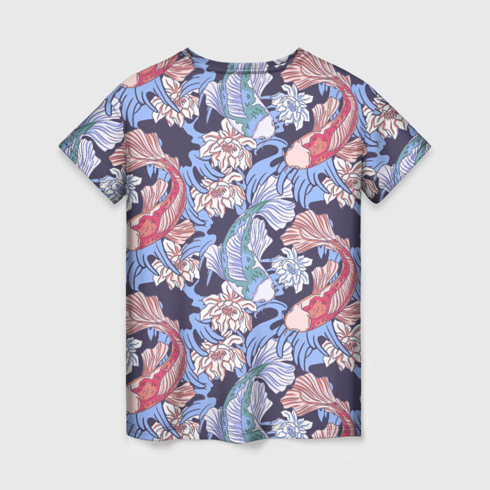 Женская футболка 3D Карпы КОИ и цветки Лотоса