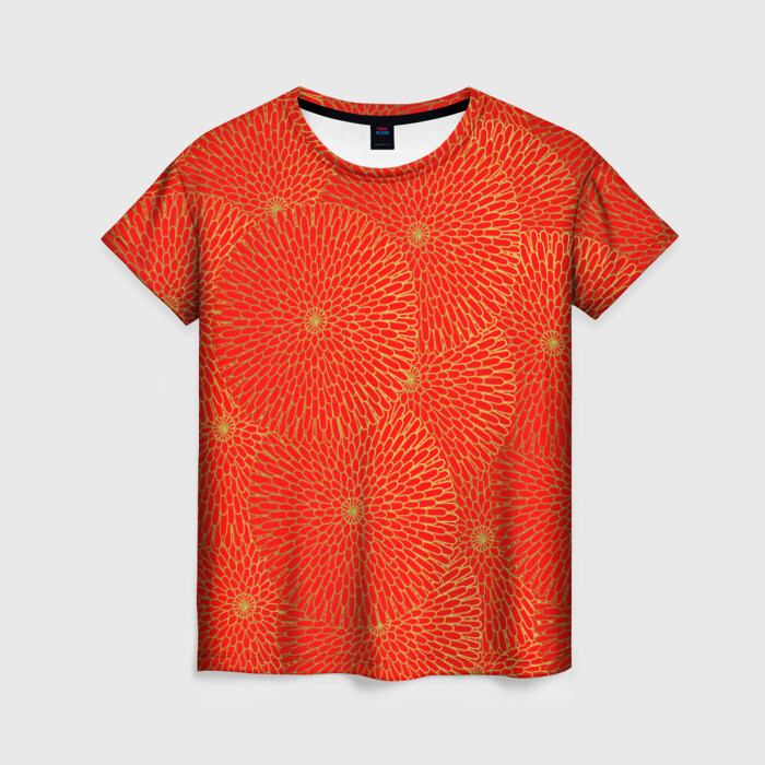 Женская футболка 3D ЗОЛОТЫЕ ХРИЗАНТЕМЫ | ПАТТЕРН