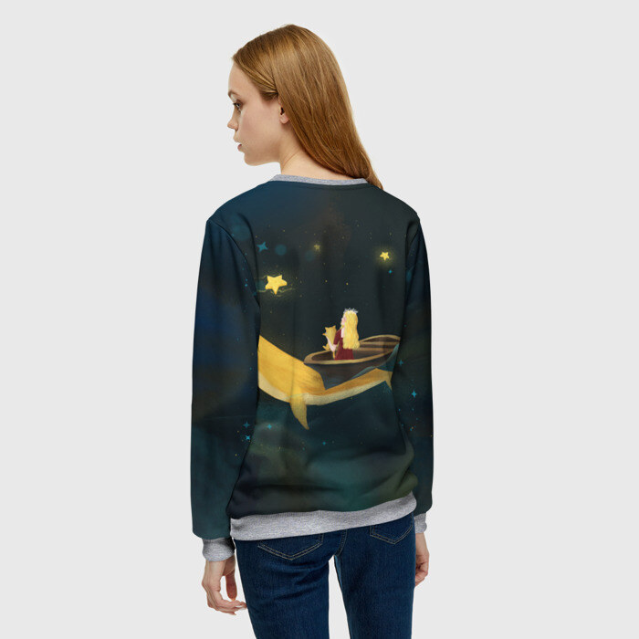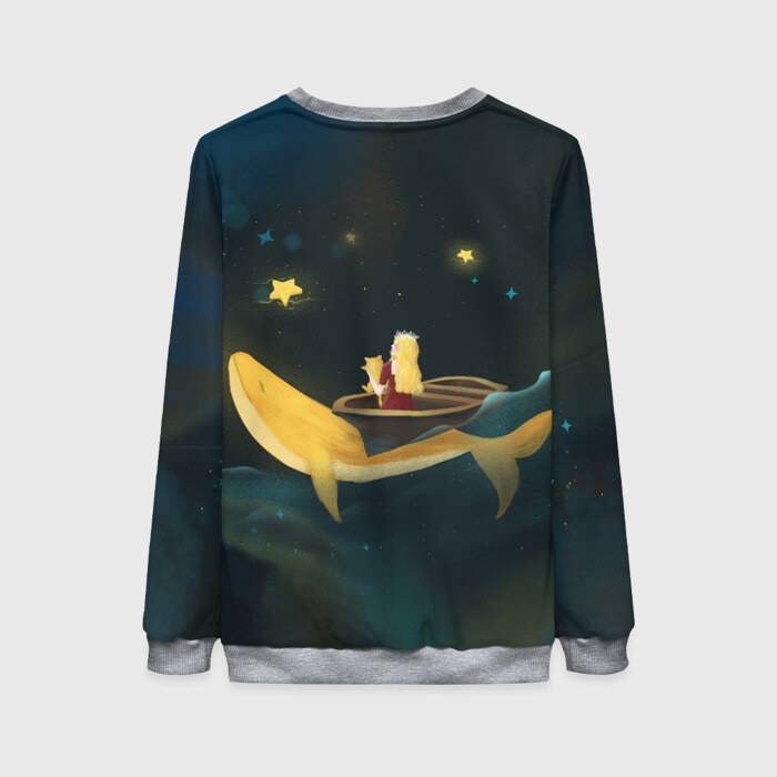 Женский свитшот 3D с принтом Девушка и кит в облаках