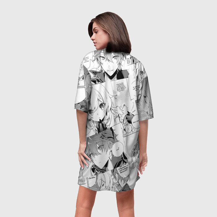 Платье-футболка 3D Люмин и Тарталья на фоне манги