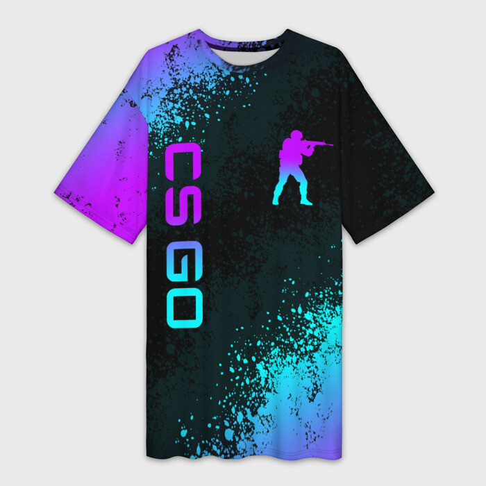 Платье-футболка 3D CS GO NEON SYMBOL STYLE SKIN КС ГО НЕОН