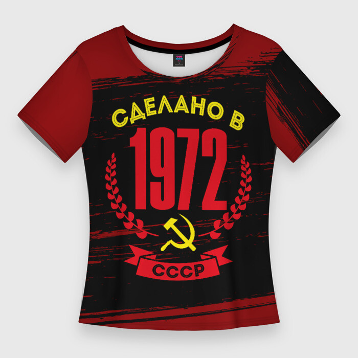 Женская футболка 3D Slim Сделано в 1972 году в СССР (желтый Серп и Молот)